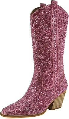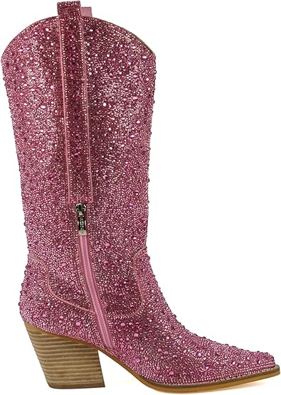 WOMEN'S RHINESTONE MID CALF BOOTS