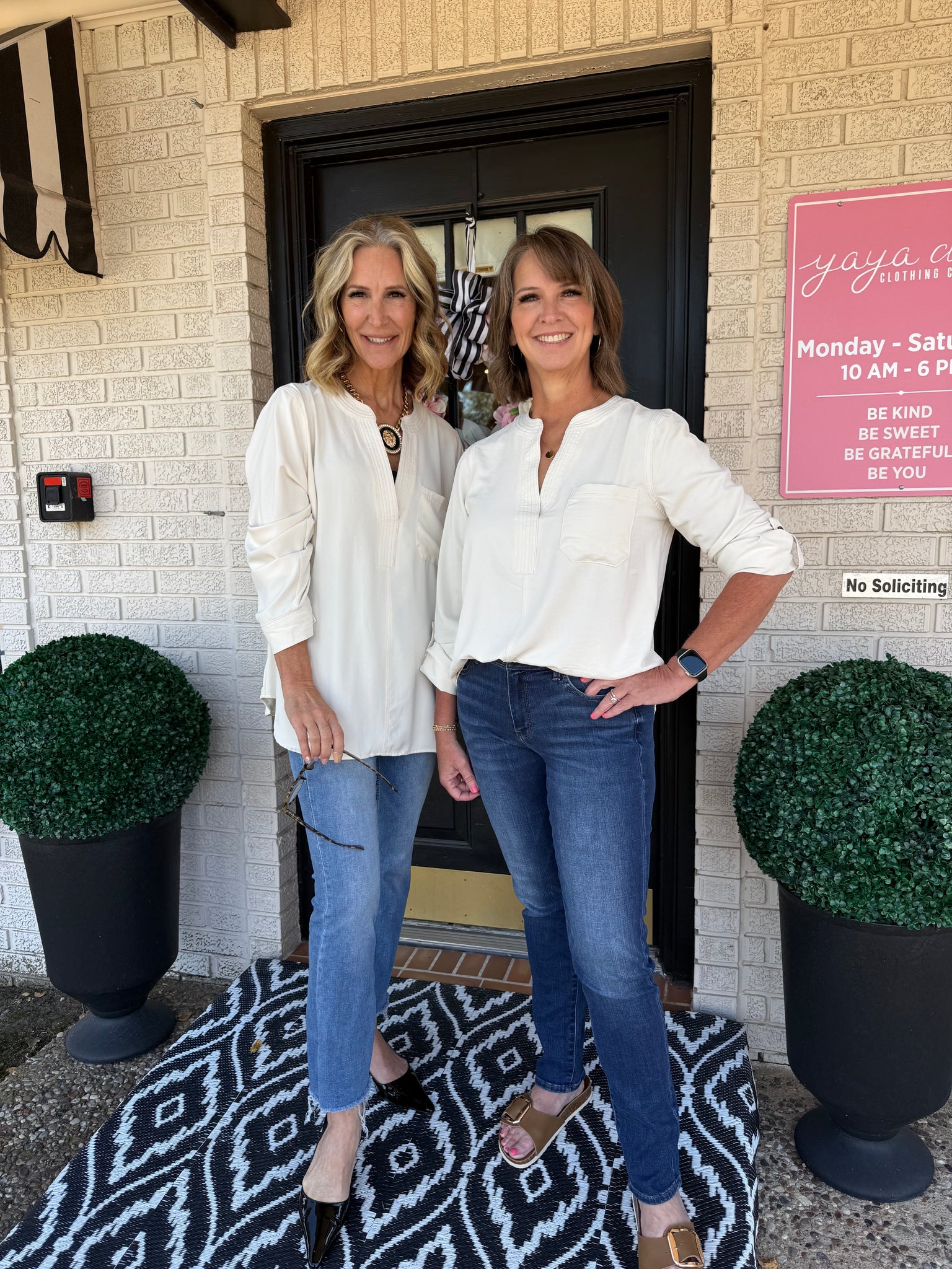 Split neck 3/4 tab sleeve solid top