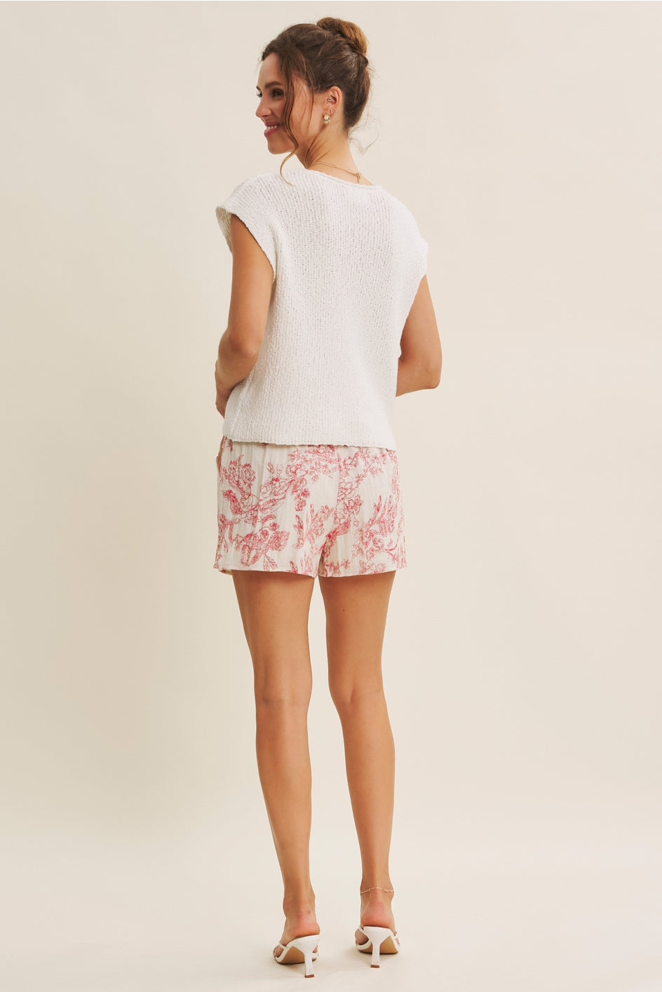 Features: - Slub knit sweater top - Relaxed fit - Cap sleeves - Short sleeves - Dolman sleeves - Split neck