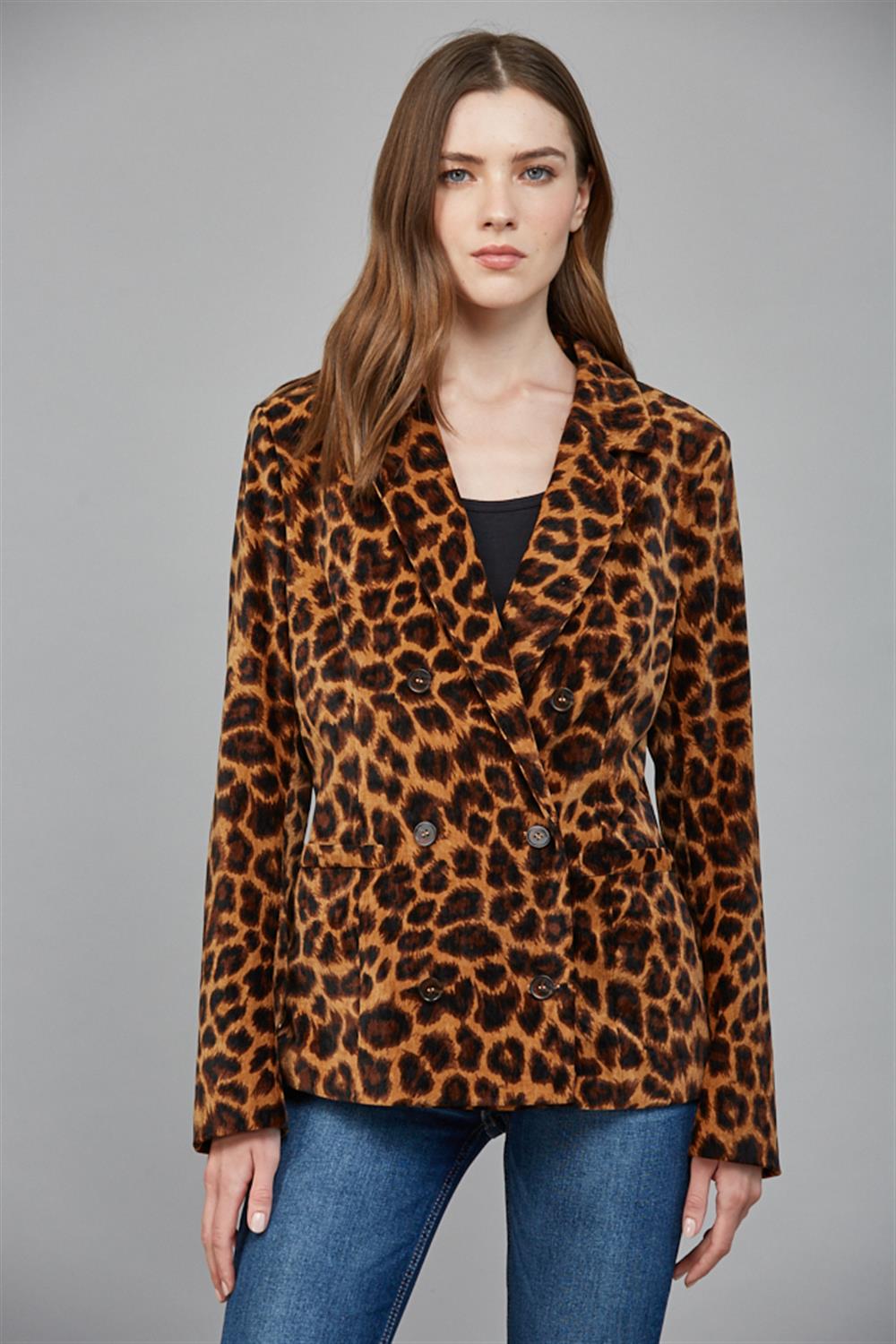 Wild-patterned double-breasted blazer that transforms any outfit into a statement look. The structured silhouette and classic button closure deliver timeless sophistication, while the eye-catching animal print ensures you'll stand out from the crowd. Perfect for elevating casual wear or adding edge to professional settings.