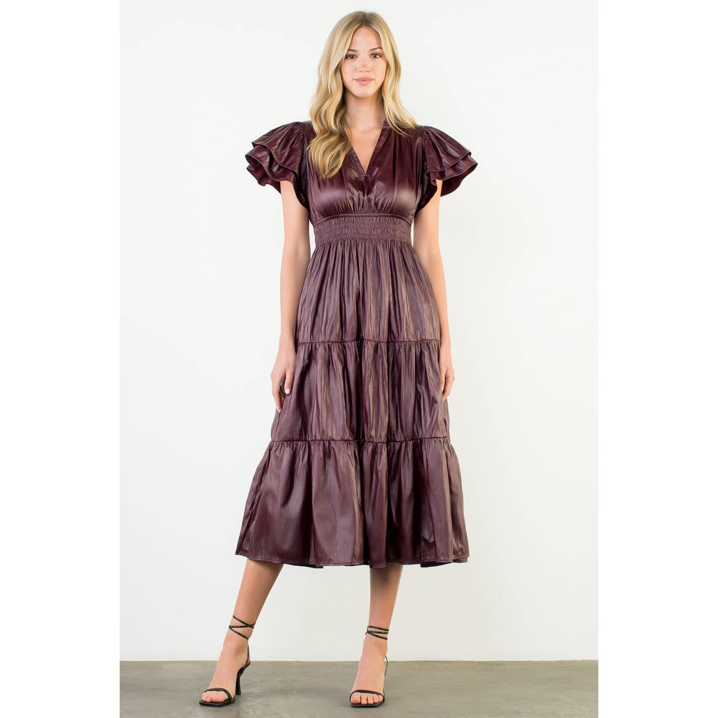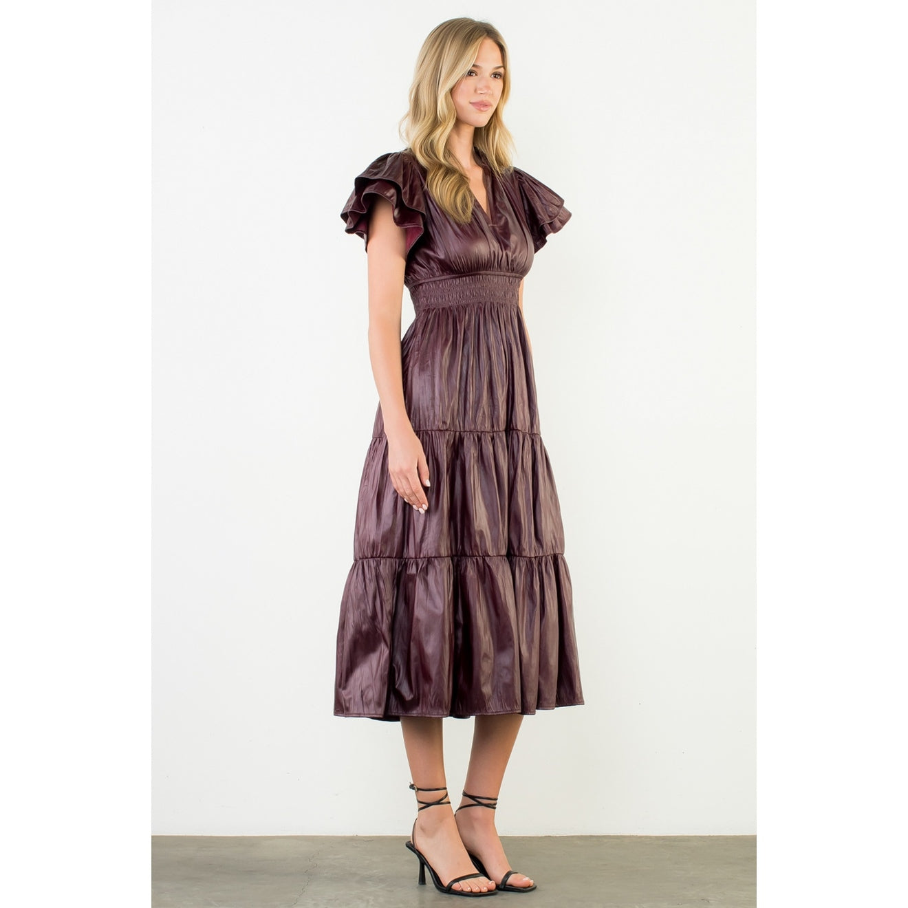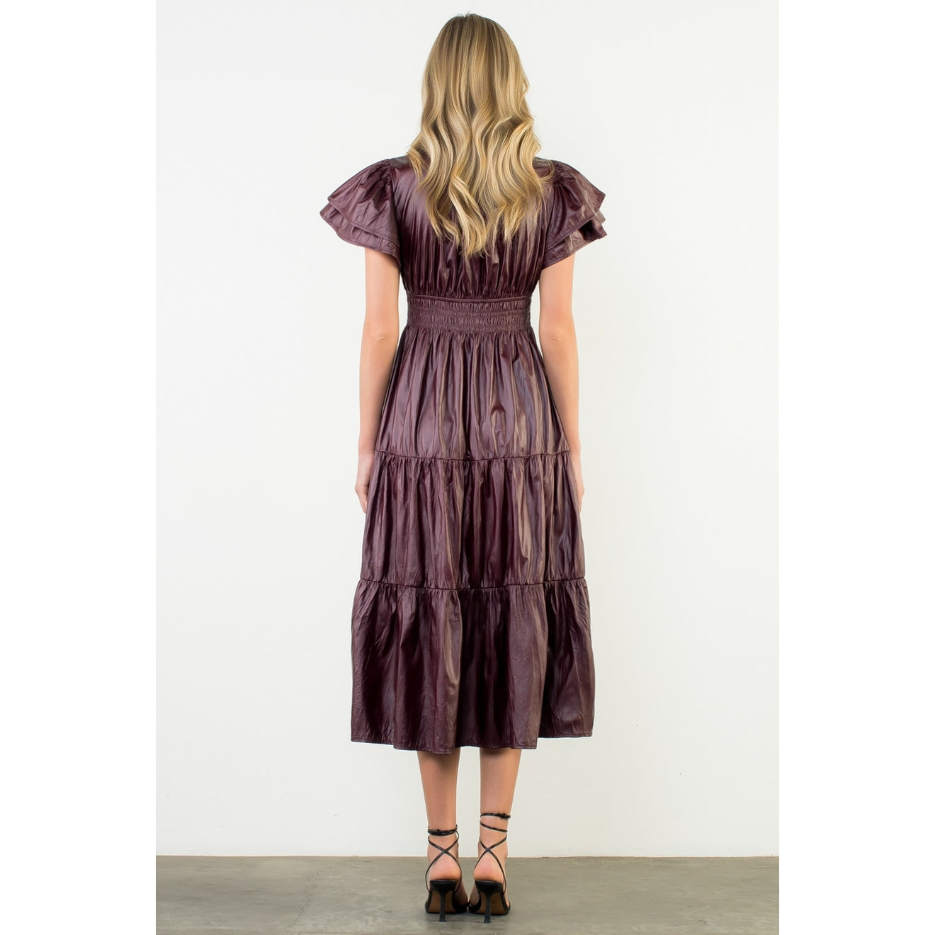 Flutter Sleeve Leather Maxi Dress