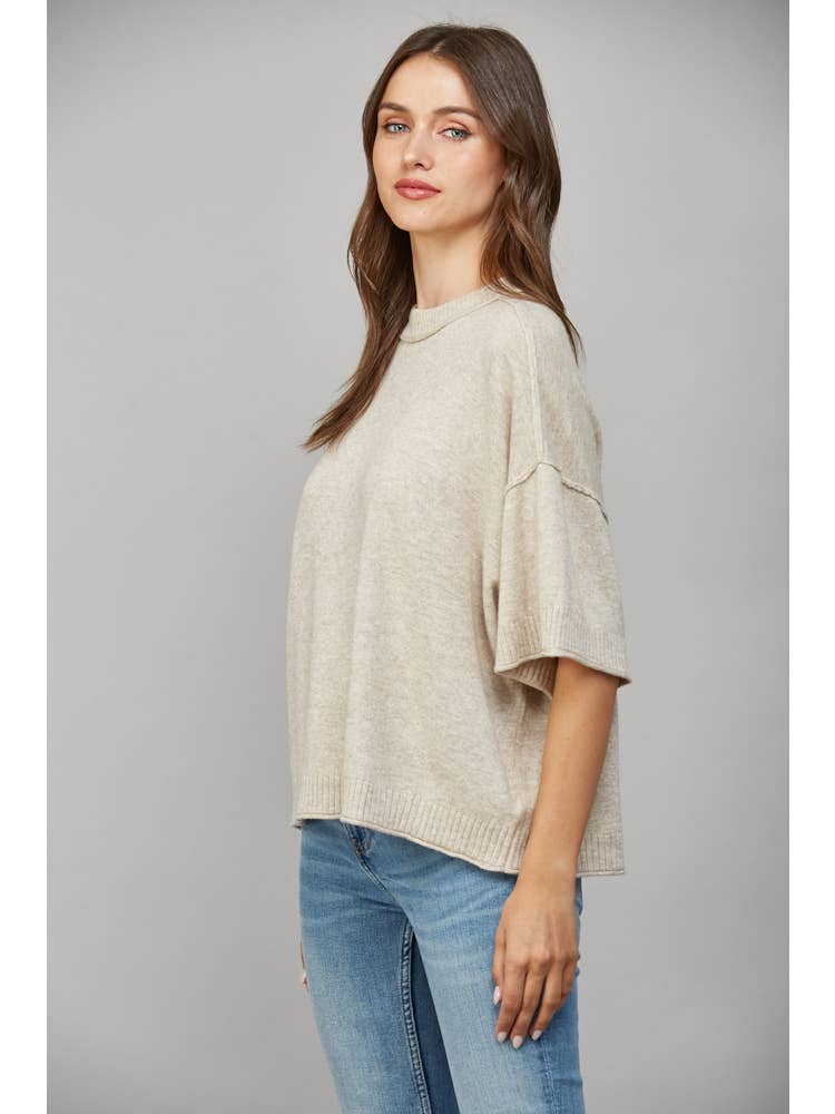 Drop Shoulder Short Slv Cashmere Blend Sweater