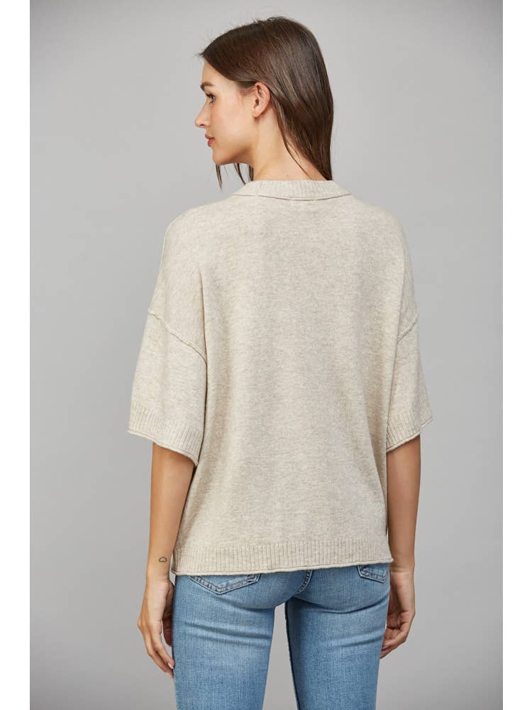 Luxurious cashmere blend construction meets effortless style in this short-sleeve sweater. The relaxed drop shoulder silhouette creates a contemporary, flattering fit that works beautifully layered or worn solo. Perfect for elevating your everyday wardrobe with understated sophistication and comfort.
