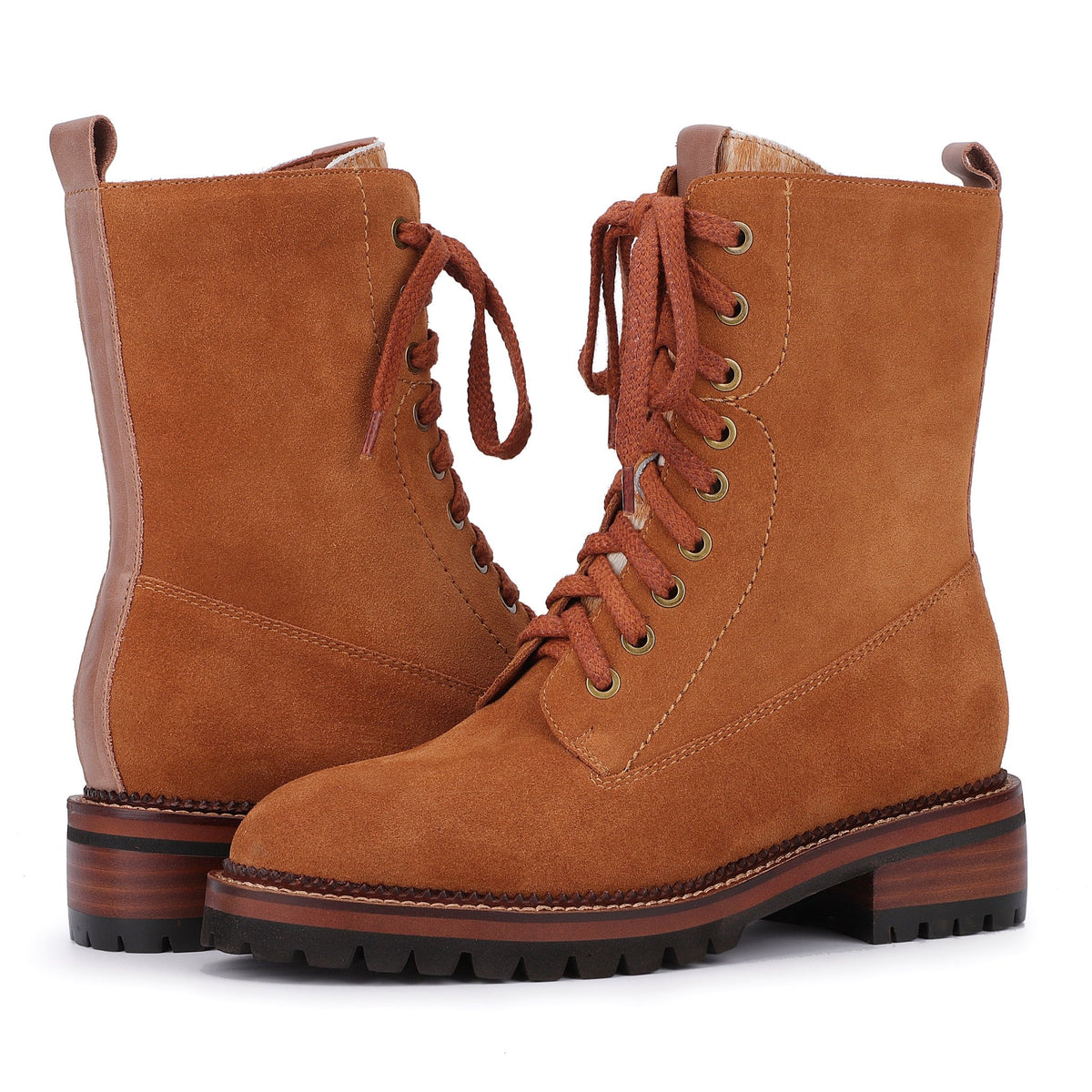 The Grove in Cognac blends synthetic leather with suede for a chic and adaptable design. These slide-on booties include a back zipper for quick, hassle-free wear and a snug fit. True to size, they deliver comfort and stylish ease perfect for daily use. Synthetic/Leather/Suede Slide-on bootie Back zipper closure True to size fit