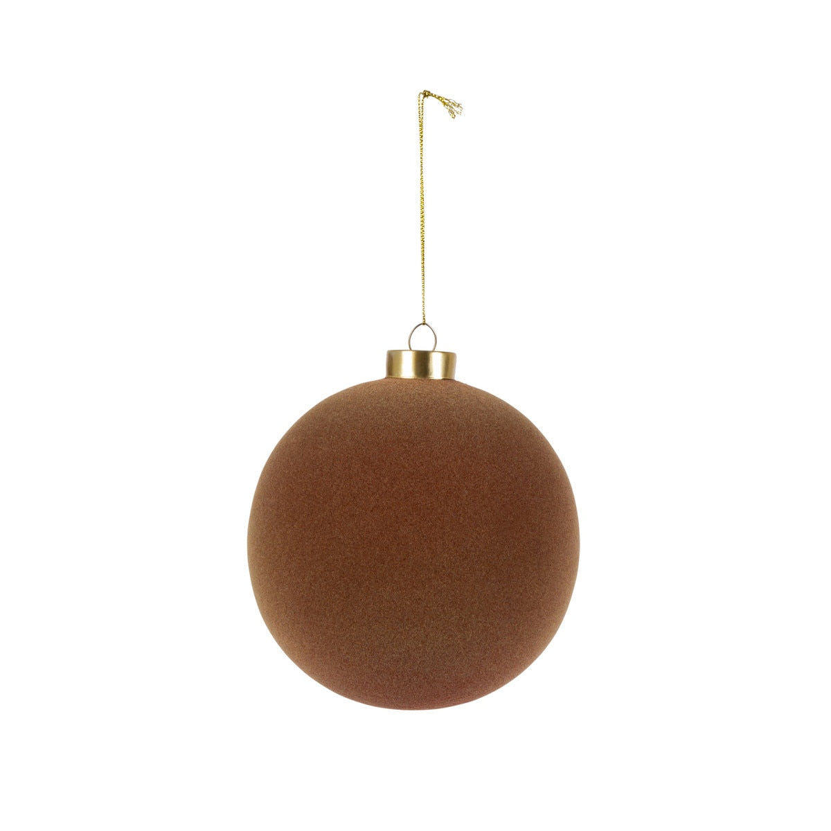 This holiday season, enhance your décor with our flocked ornaments in a deep chestnut shade. Their soft, velvety finish and elegant color bring warmth and refinement to any setting. Choose from three sizes to perfectly complement your festive design.