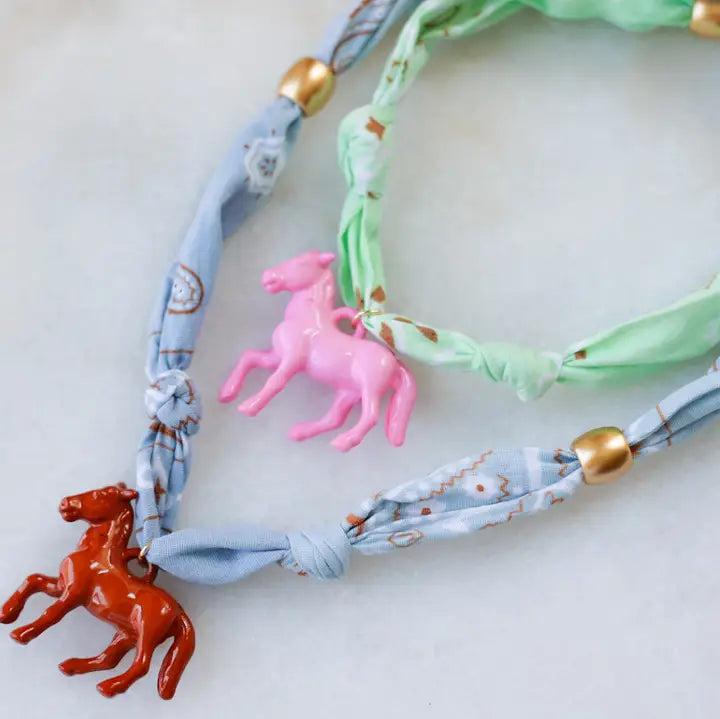 Elevate your accessory game with this versatile bandana scarf featuring striking resin horse designs. Available in multiple rich colors, each piece showcases detailed equestrian-inspired craftsmanship that adds vintage charm to any outfit. Perfect for styling around your neck, tying back your hair, or accessorizing your favorite look. A statement piece that celebrates timeless fashion with a modern twist.