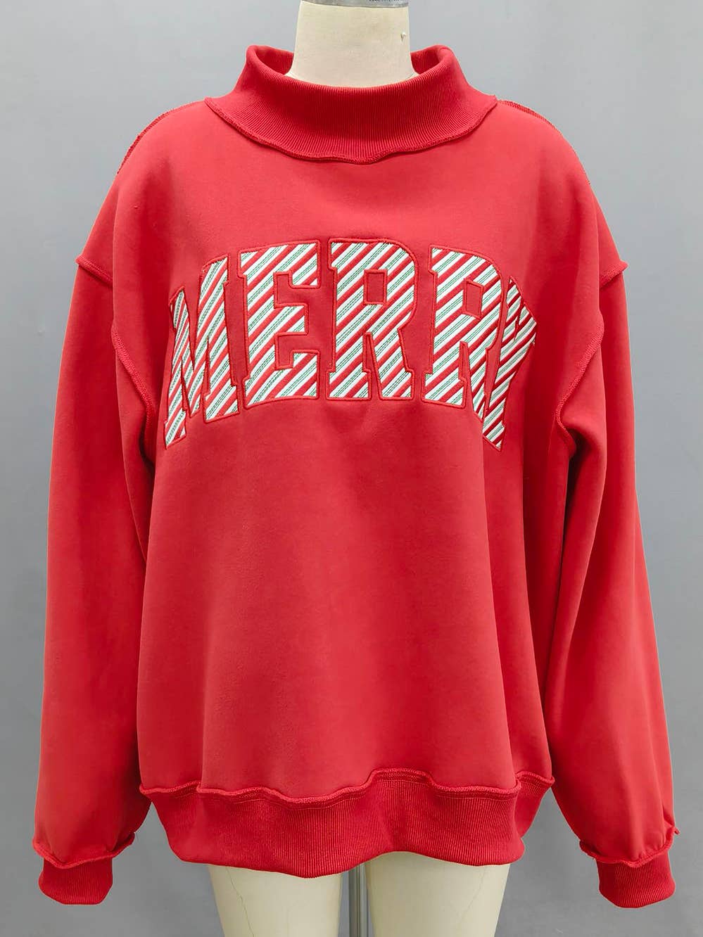 Wrap yourself in ultimate comfort with the 'MERRY' Embroidered Mock Neck Sweatshirt. This oversized essential features a luxuriously soft cozy fleece that feels incredible against your skin, while the relaxed drop shoulder silhouette and long sleeves provide effortless style. The mock neck adds a polished touch, and reinforced rib banding at the hemline and cuffs ensures lasting durability. Perfect for layering or wearing solo, this cozy piece becomes an instant favorite in your everyday rotation.
