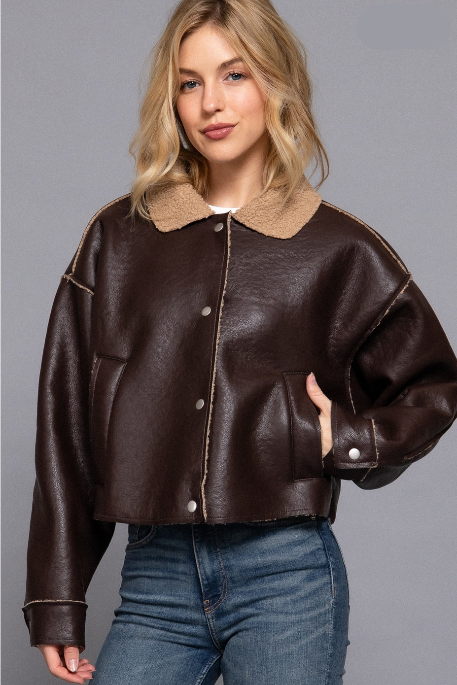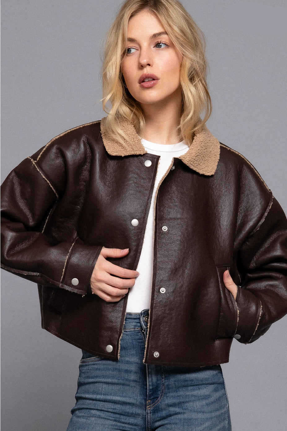 Shop this long sleeve faux leather jacket featuring a cozy fur-lined interior, crafted from 100% polyurethane for durability and style. Ideal for plus sizes and curvy fits, this trendy piece blends active basics with western flair. Perfect for winter nights, clubbing, or a casual outing, its essential zipper design makes it a must-have addition to your wardrobe.