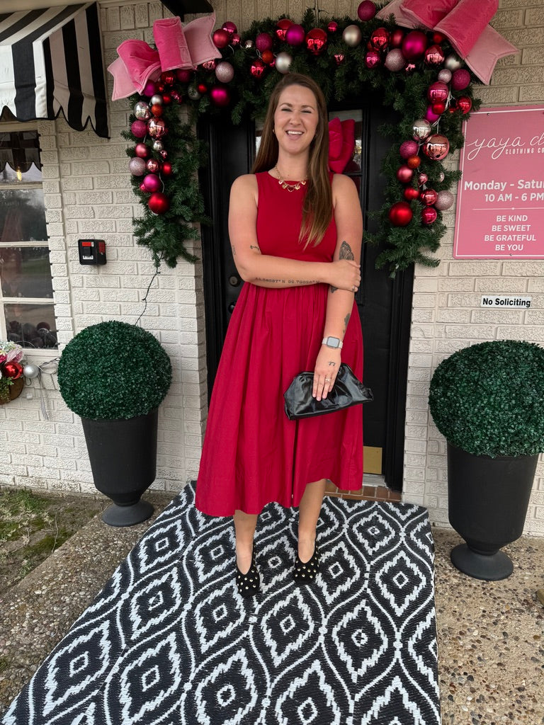 A timeless, flattering silhouette that moves beautifully and works for so many occasions. This sleeveless crimson midi dress features a comfortable fit with an easy flow that feels polished without being restrictive.