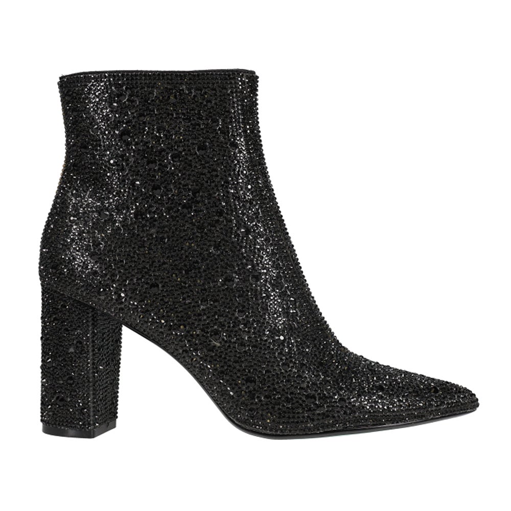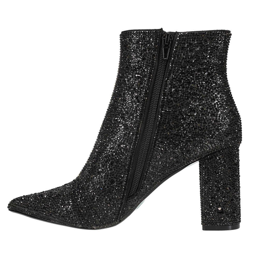 Elevate your style with the SB-CADY bootie, featuring sparkling rhinestones, a sleek pointed toe, and a sturdy 3.5-inch block heel for confident strides.