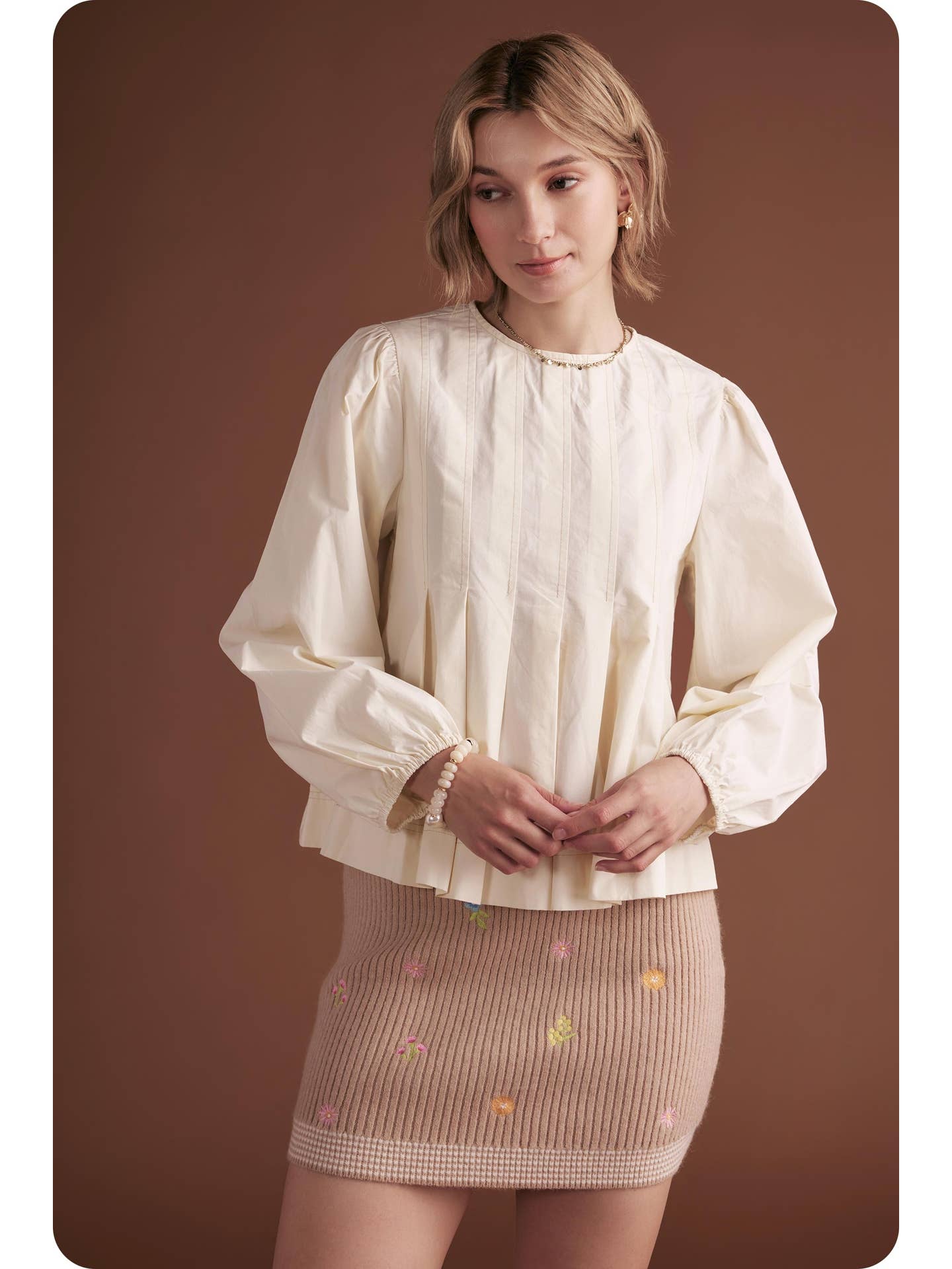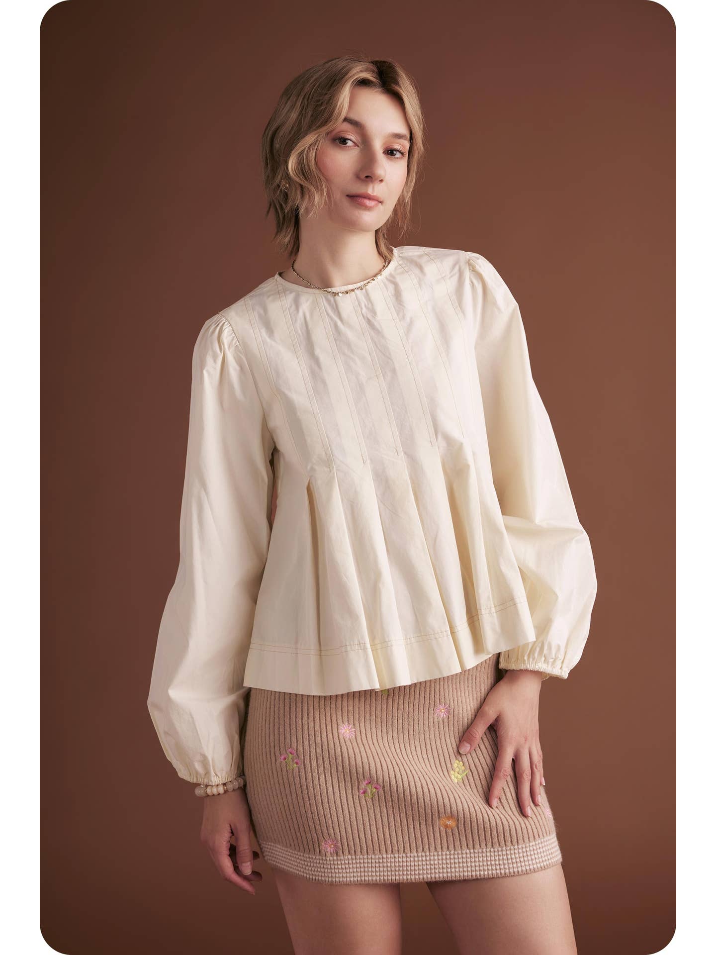 Get ready to turn heads in this adorable cotton poplin top! Charming pin-tuck details add texture and personality to the front and back, while playful bubble sleeves with cozy elastic cuffs bring that perfect touch of fun. The shirred shoulders feel amazing against your skin, and the sweet keyhole back with button closure is both chic and practical. Whether you're heading to the office or out with friends, this is the go-to piece you'll reach for again and again. Don't miss out—add it to your cart today!
