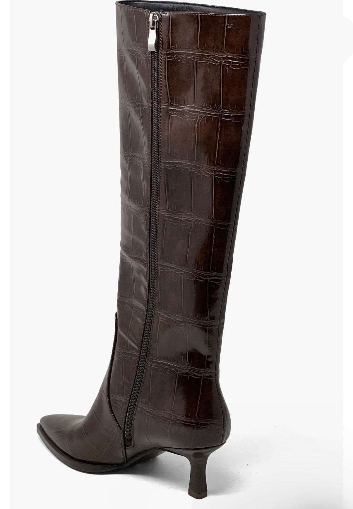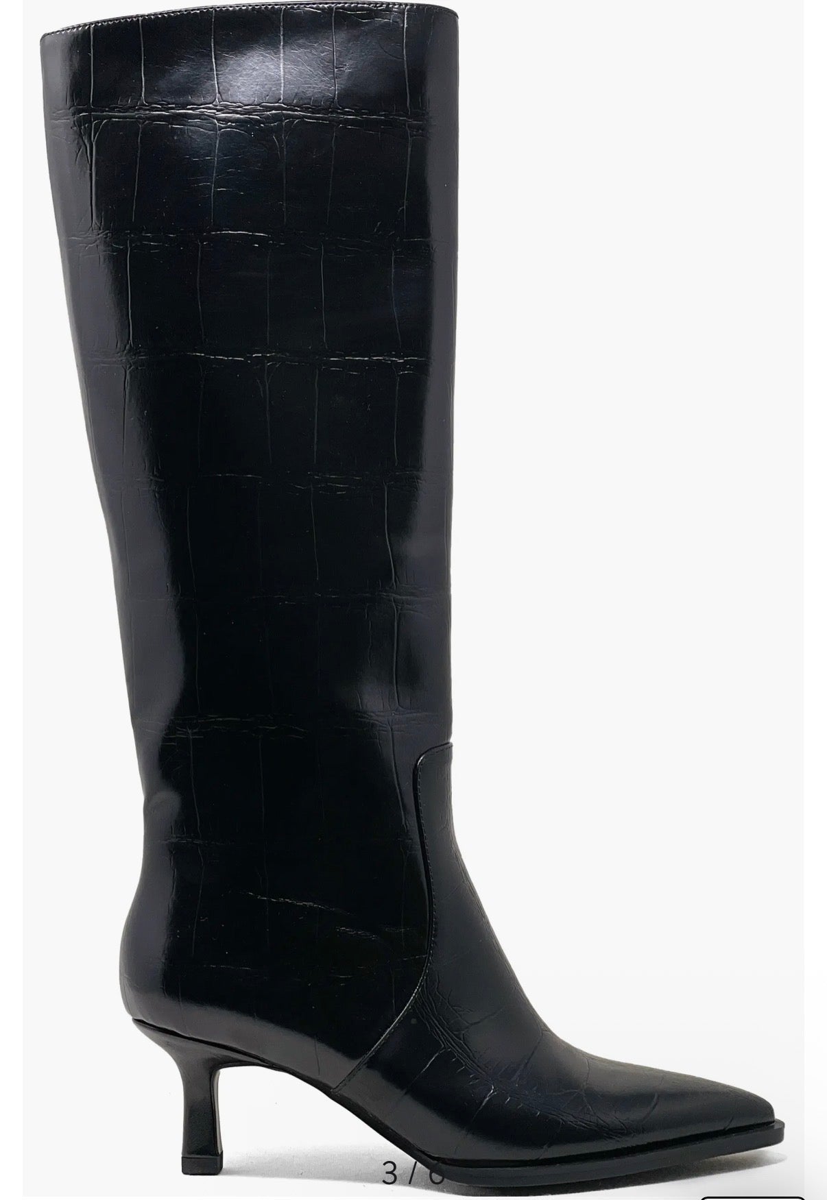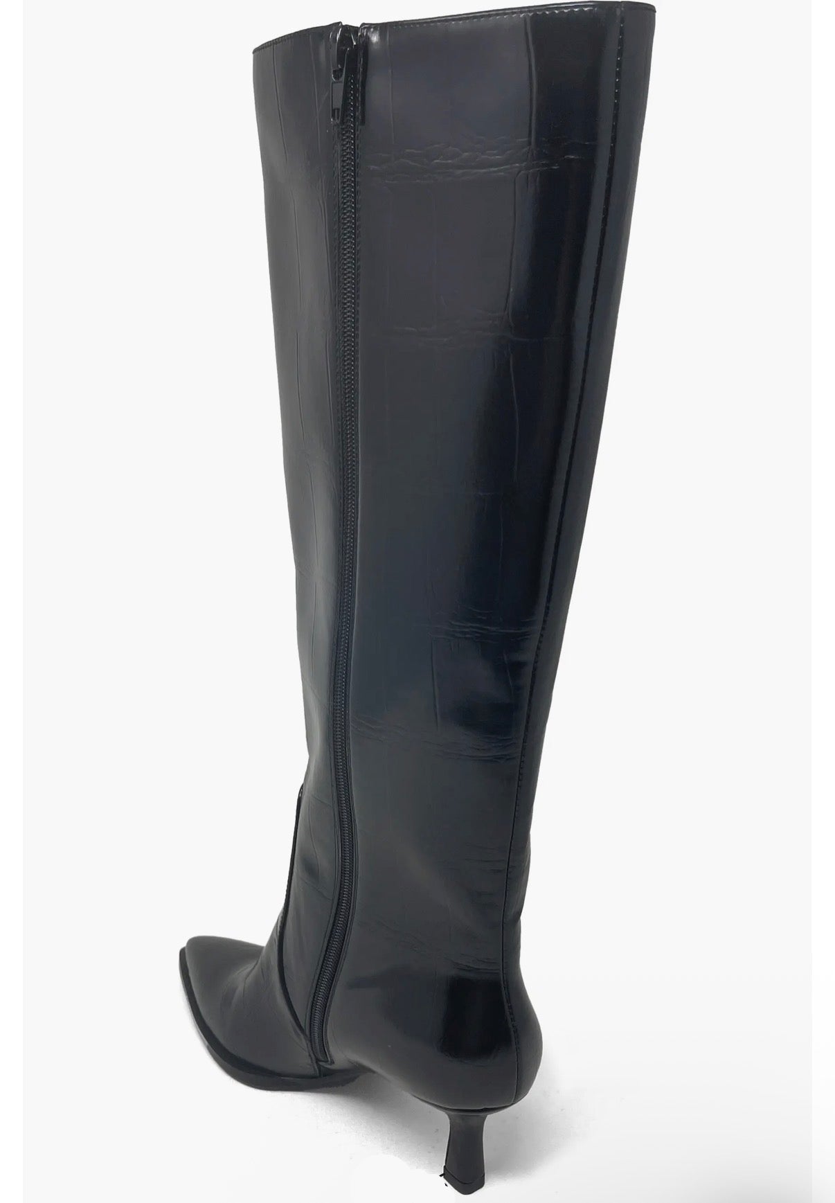 Elevate your everyday style with the Vanessa Pointed Toe Knee High Kitten Boot. This sophisticated silhouette combines timeless elegance with modern comfort, featuring a sleek pointed toe and a manageable kitten heel that transitions seamlessly from office to evening. The knee-high cut offers flattering leg coverage while maintaining an effortlessly chic aesthetic. Crafted for the woman who refuses to compromise between fashion and wearability, the Vanessa delivers polished confidence with every step. Perfect for dressing up your favorite jeans or completing a professional ensemble.